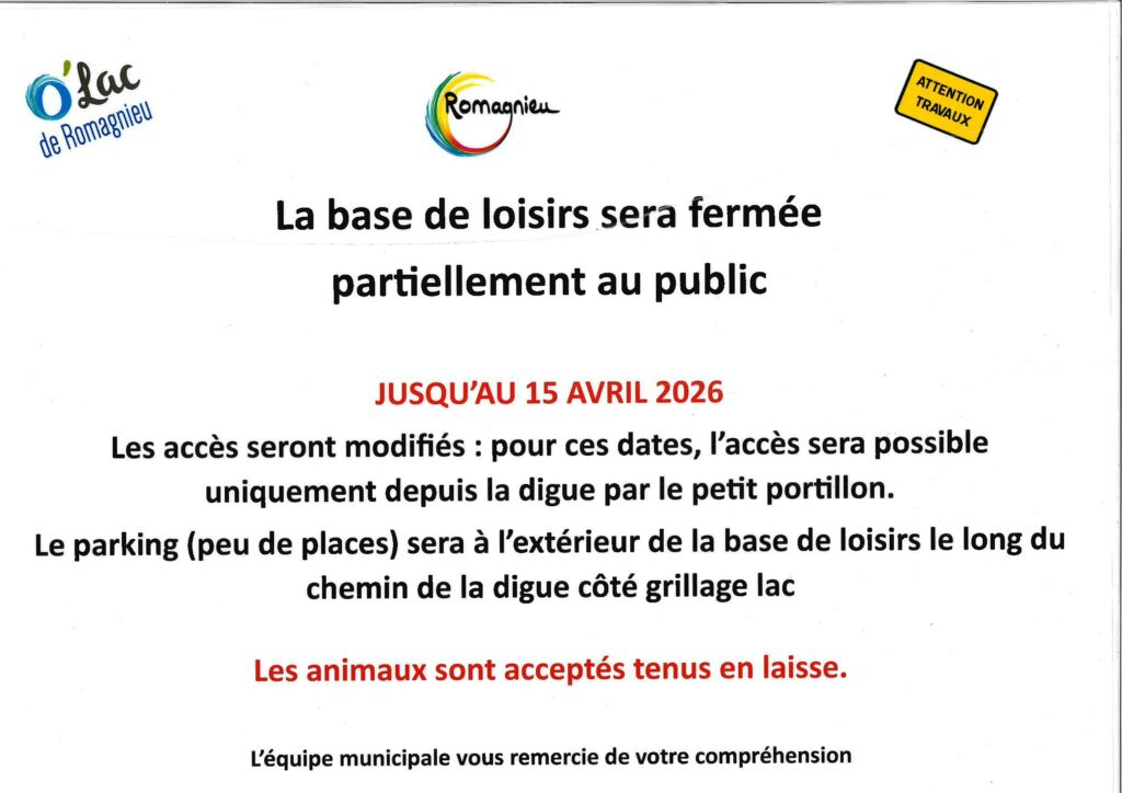 Accès à la base de loisirs jusqu’au 15 avril
