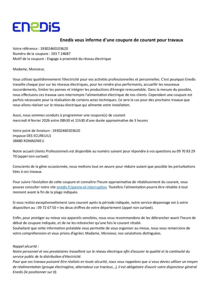 Coupure de courant pour travaux