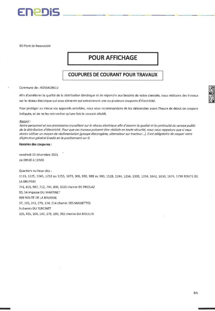 Coupures de courant pour travaux